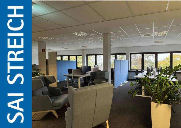 Im 2. OG des Bürokomplexes stehen insgesamt 579 m² Bürofläche zur Verfügung, die sich flexibel nutzen lässt. Die Fläche ist mit modernen Standards ausgestattet, darunter eine leistungsfähige DV-Verkabelung, Außenverschattung, elektronisches... mehr erfahren