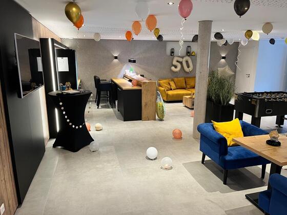 Wir bieten unseren hochwertig ausgestatteten Eventraum für ihre Veranstaltung an. Für ihre Geburtstagsfeier, ihre Hochzeit oder ihre Tagung können sie den 110 qm großen Veranstaltungsraum mieten.